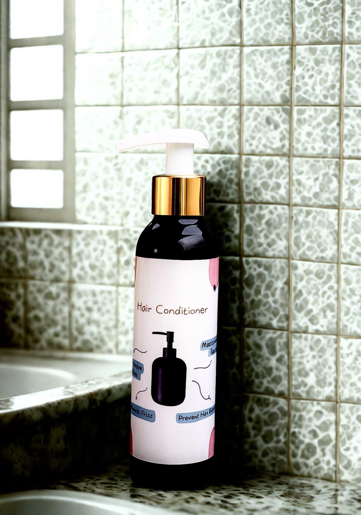 Hair conditioner is a hair care product applied after shampooing to restore moisture, improve hair texture, and enhance manageability and shine. It contains ingredients like fatty alcohols, humectants, and oils that smooth the hair, reduce tangles, and protect it from damage. Conditioners make hair softer, more flexible, and less prone to static, with different formulations available to address specific needs like dryness, damage, or split ends.